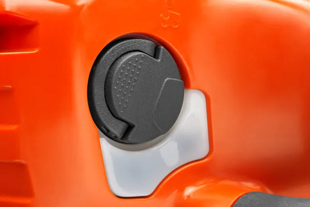 Adding chain oil is facilitated by the flip-up tank cap that is easy to grip and open, even with gloves. Eliminates the risk of losing the cap since it is always attached to the chainsaw.