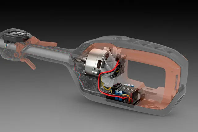 Brushless motor for higher efficiency, longer lifetime, and less maintenance compared to brushed motors. Since there are no brushes, friction is eliminated, no energy is lost, and the motor runs cooler. This also eliminates the need for maintenance or replacement of worn brushes, and you can benefit from improved performance and higher torque.