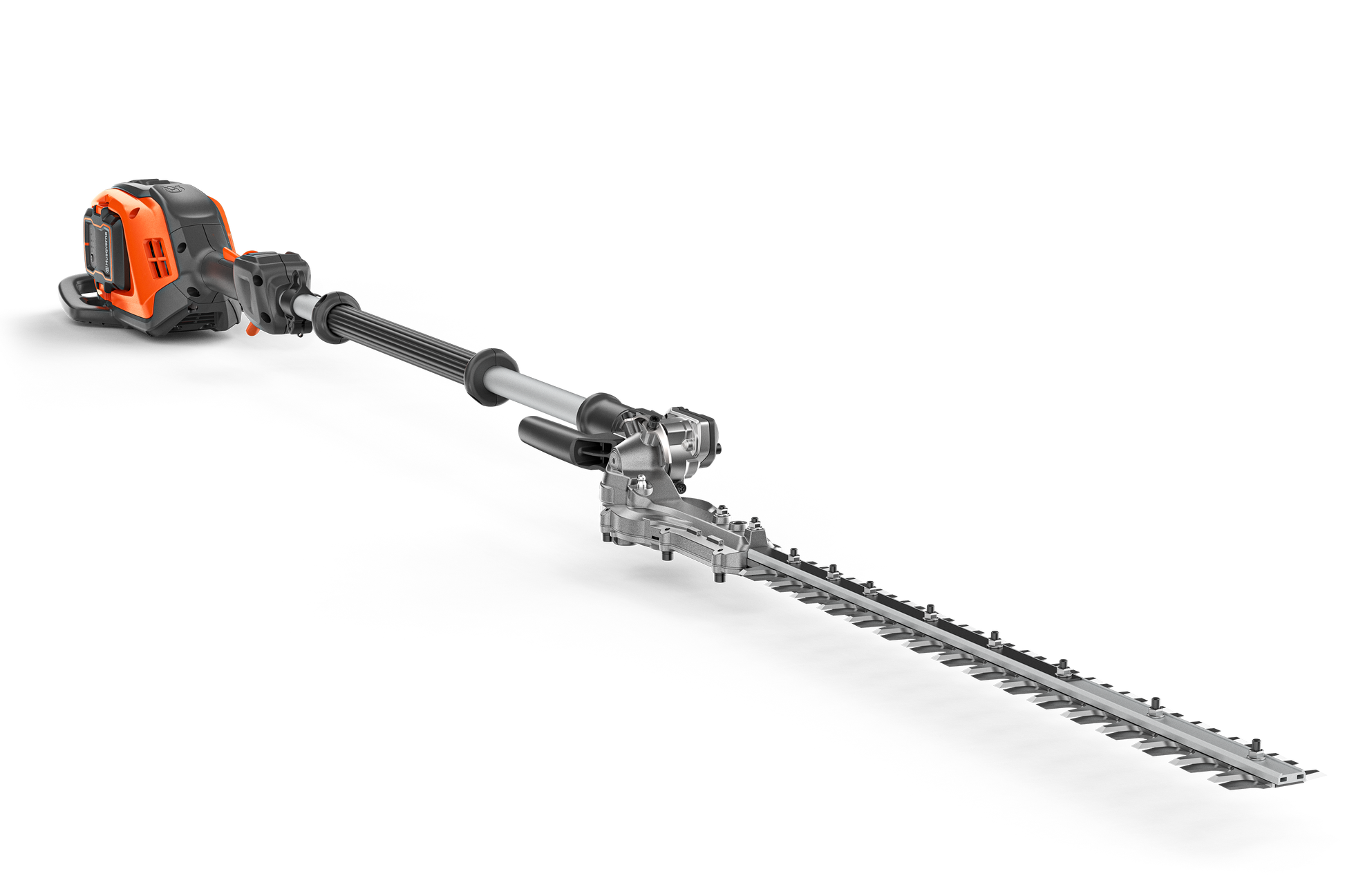 Husqvarna 525iHE3 is a high-capacity, battery-powered pole hedge trimmer with up to 3m reach designed for professional use. The 60cm adjustable cutter bar equipped with triple grinded knives offers high cutting speed for high productivity when cutting high, wide or low hedges. The cutter bar also folds easily for easier transport and storage. The well-balanced design, low vibration level as well as the ergonomic handles and the intuitive user interface offer comfortable use during long and demanding working hours. IPX4 standard for all-weather use and an active battery cooling system ensure high uptime. Integrated connectivity for easy connection to digital services such as Husqvarna Fleet Services™. Battery and charger not included.