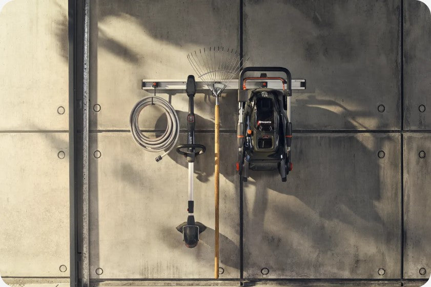 An accessory in the Aspire storage system, this 5-hook kit is optimised to fit the full Husqvarna Aspire range as well as the most common garden tools in your shed, such as hand tools, water hoses or brooms. Each hook can be attached to the wall-mounted Aspire storage rail or installed directly onto the wall – enabling smart, effective storage. Coming in varying sizes, these single and double hooks of premium material conveniently and neatly organise all your garden tools with limited space.