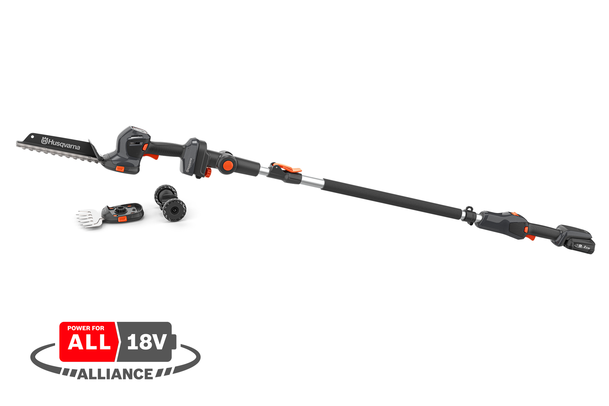 A complementary pole with a telescopic shaft is included to enhance the reach up to 3 meters and provide an ergonomic working position. To minimize the storage space needed, the shrub shear is compatible with Aspire™ Storage solution and comes with a tailor-made hook for convenient wall storage.