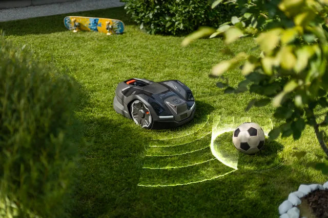 Built-in sensors assist the mower to detect and avoid objects, reducing the risk of unplanned stops. The detections mode reduces the speed and makes collisions softer and the avoidance mode causes the mower to turn away and avoid impact.