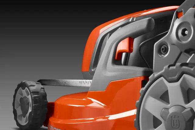 Husqvarna LC 142i is an easy to use battery lawn mower with 42 cm cutting width and is suitable for mowing small and medium-sized lawns. Very easy to start – all that is needed is to remove the bailstop and pull the bail down. The mowing of the lawn can be done on a single charge, and with the compact design and ergonomic handle, the mower is easy to manoeuvre. Thanks to the folding and adjustable handle and the two integrated lifting handles, it is also easy to store and transport. Compatible with Husqvarna 36V battery system.